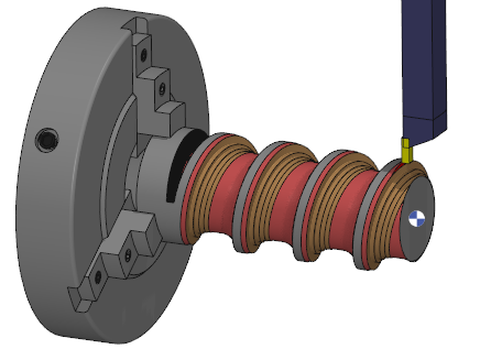 Ebauche d'une vis sans fin sur un tour avec la gestion du brut. |