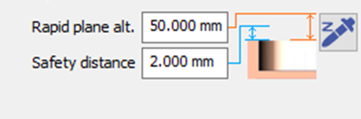 Cette distance correspond à la marge de sécurité pour les mouvements rapides. La distance de sécurité est liée à l'altitude de la matière et elle est toujours positive.