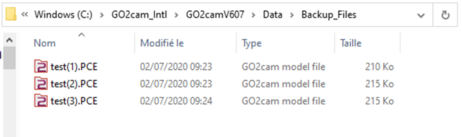 GO2cam offre 2 possibilités pour sauvegarder les fichiers automatiquement :