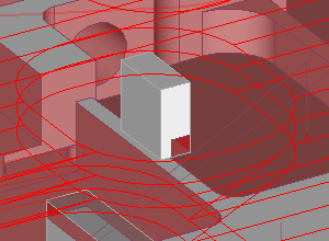 À première vue, le résultat obtenu pourrait passer pour une section, mais il n'en est rien : le calcul prend en compte toute la matière qui se trouve au dessus de l'altitude donnée . Il gère donc les formes en contre dépouille et comme il est calculé à partir du brut, il gère également l' usinage multi-faces .