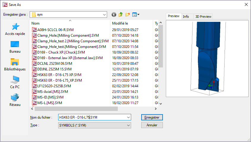 Enregistrez le fichier dans le dossier symboles de l'utilisateur pour une utilisation dans GO2cam. |