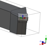 Le système d'axes peut également être importé à partir de fichiers CAO solides en activant l'option Import filaire Cette fonctionnalité est particulièrement utile pour créer des porte-outils en important des fichiers STEP de bases de données telles que Sandvik ou Iscar. Elle permet la récupération des systèmes d'axes pour le positionnement des plaquettes, comme illustré pour l'outil de tournage dans l'image de droite. Cliquez sur l'onglet « Création » puis sur le menu « Porte-outils » |