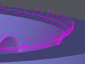 Si le mouvement rapide entre deux passes est trop petit par rapport au diamètre de l'outil, le mouvement est effectué avec une courbe d'avance. |
