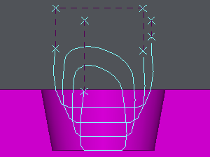 Définition des entrées et sorties entre les passes. Sans rayons d'entrée et de sortie. |