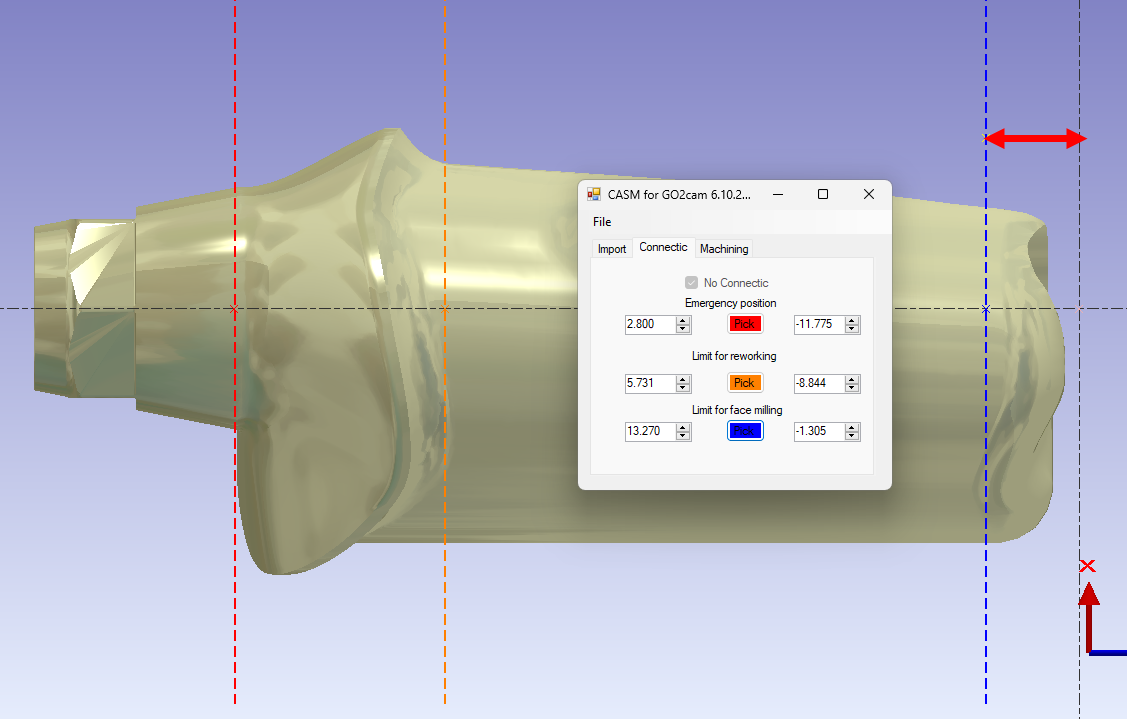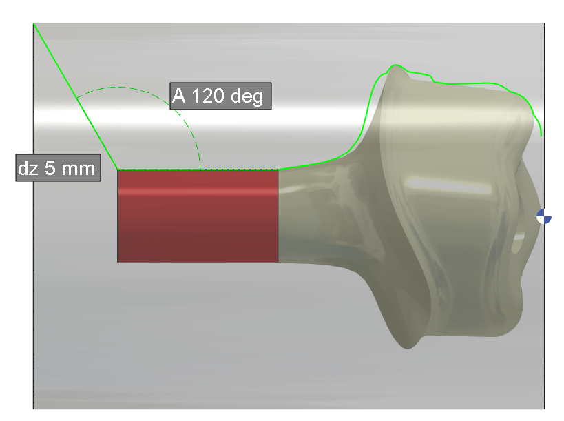 Profil de tournage Basé sur la silhouette STL sans zone de connectique plus 5 mm et 120 degrés La longueur et l'angle sont fixés dans l'application |