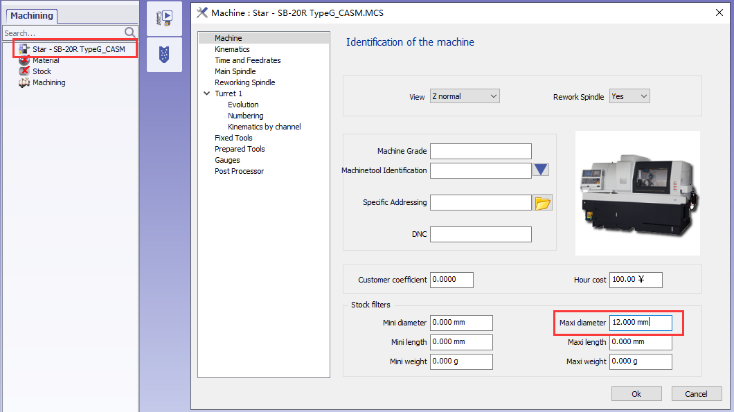 Diamètre brut Changer la valeur dans le fichier machine puis enregistrer la machine |