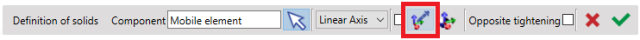Sélectionnez les commandes 'Vecteurs composant' puis 'orienter l'axe' et cliquez sur la face de l'élément mobile pour créer le vecteur comme indiqué. |
