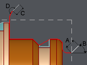Bu açı, son işlenmiş elemanın uç noktasına, dışa taşma elemanının uç noktasına veya çıkış yay radyüsünün uç noktasına göre uygulanır.