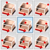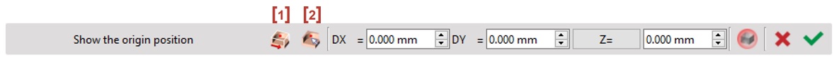 You can set the origin according to 9 predefined positions on the part by clicking on [1] .