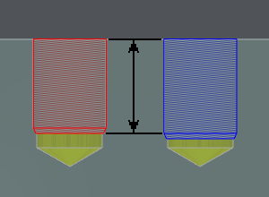 Solda: kılavuz ucunda hesaplama. Sağda: kılavuz çapında hesaplama. Bu yeni hesaplama türü başka iyileştirmeler de sağlar: kılavuz takımının yeni bir parametresi var Pah Yüksekliği. Eğer değer ise 0 , pah, takımın adımıdır. |
