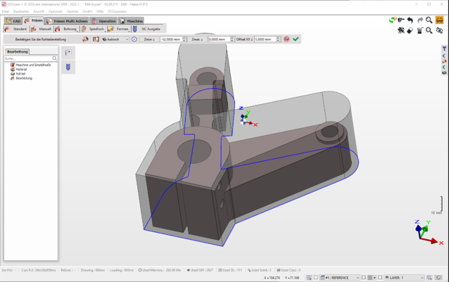 GO2cam'in mevcut stokun şekline uyarak takım yollarını hesapladığını ve böylece boş işleme yapmaktan kaçındığını çok net görebilirsiniz. |