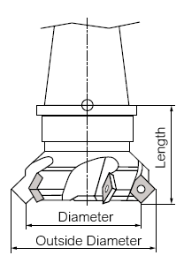 En uygun takım türü yüzey freze kesicisidir (tip 140): burada alt (küçük) ve üst (büyük) çaplar belirtilebilir. G41/G42 ile radyus düzeltmesi için ilgili çap alt çaptır . Bu, takımın ölçülmesi gereken çaptır (resimde, çap). |