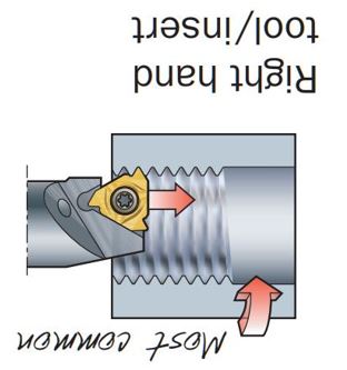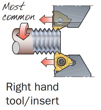 Sağ takımla dış tarafta sağ el vida Saat yönünün tersine nedeniyle yalnızca kayarak işlemeye uygundur. |