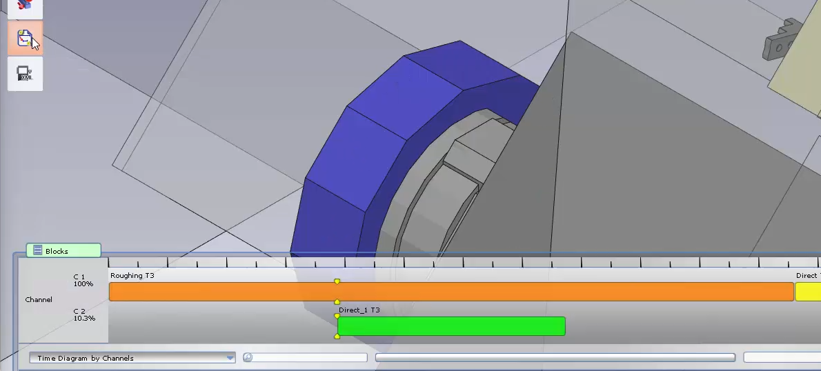 Çoklu taretli makineler için, çeşitli çevrimleri senkronize etme yeteneği, takımların boşta kalma sürelerini azaltarak ve çarpışma olmadan her bir çevrimin işleme sürelerini üst üste bindirerek işleme sürecinin verimliliğini artırır. GO2cam'de, 2 çevrim arasında senkronizasyon tanımlamak için aşağıdaki adımları izleyebilirsiniz: |