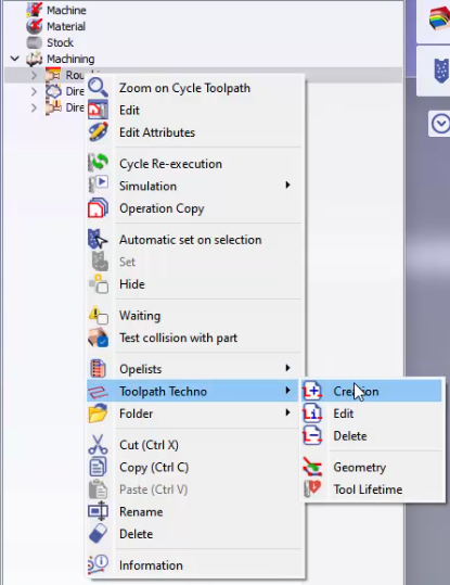 Bunu yapmak için, sağ tıklayın gereken çevrim üzerinde, bu durumda kaba işleme çevrimi ve Takım yolu Tekno seçiminden oluşturmayı seçin.