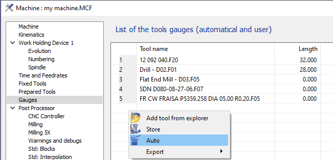 GO2cam'de, makine dosyasında tanımlanan farklı takım listeleri kullanırız. Makine Dosyası :