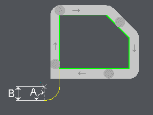 "Giriş Açısı" tarafından tanımlanan yöne göreceli olarak ve makinenin doğru bir yaklaşma telafisi yapabilmesi için en az ofset değeri kadar olmalıdır.