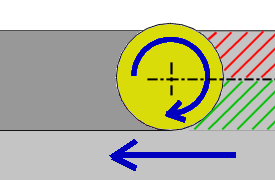 Takım tam malzemede veya daha doğrusu takım çapının %50'sinden fazla bir adım aşımıyla çalıştığında, işleme eş zamanlı Aşağı ve Yukarı .