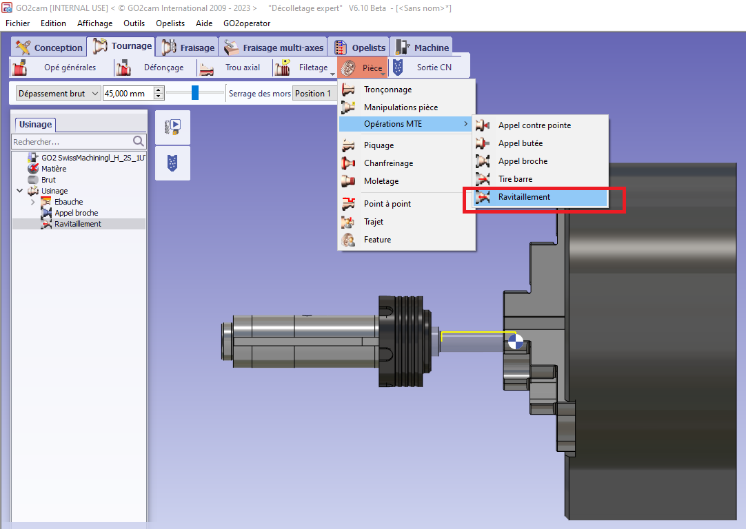 Yeniden yakalama işlemi, bir sonraki iş parçasını yeniden tutmak için sürgülü mesnetin çubuğu itmesini sağlar. Bu, aynı adı taşıyan menüde bulunan bir MTE işlemidir. |