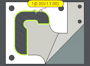 Alt yarıçap yalnızca görsel bir etki olarak, mekanik özellikler olmadan hizmet edebilir. İşlenmesini önlemek için, her çevrimin Seçenekler sayfasındaki Katı üzerinden okuma seçeneğini Hayır olarak ayarlayın. 'Evet' olarak ayarlandığında, çevrim Seçenekler sayfasında belirtilen tepe değerini dikkate alarak yarıçapı işleyecektir. Evet Silüet tipi gibi, cep silüeti de