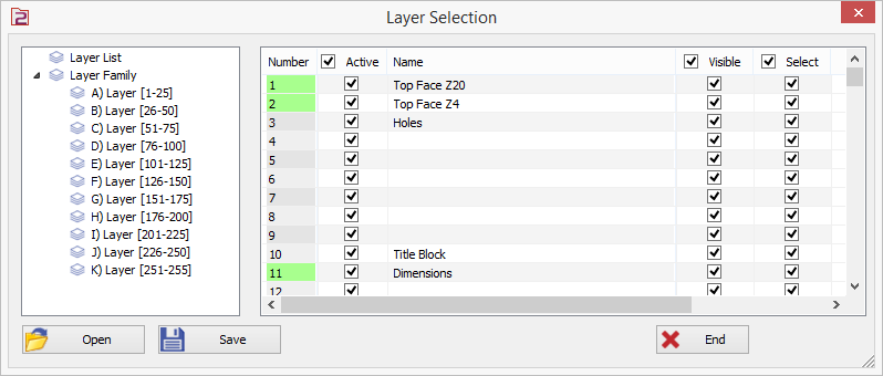 Özelleştirme seçenekleri, mevcut yapılandırmayı *.LAY uzantılı bir dosyaya kaydetmeye olanak tanır. Bu dosya, önceden tanımlanmış katman ayarlarını uygulamak için farklı parçalar üzerinde çalışırken yüklenebilir.