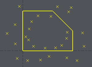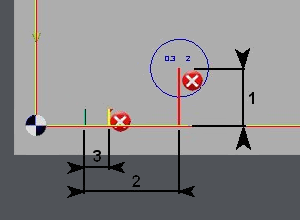 Örnek 2 : taslakta birçok nokta var, GO2cam profili analiz eder ve girdiğiniz parametrelere göre en iyi noktayı kurtararak diş açma noktasını oluşturur. Ekranın altındaki bir mesaj, diş açma noktasının isteğinize göre doğru olduğunu onaylar. |