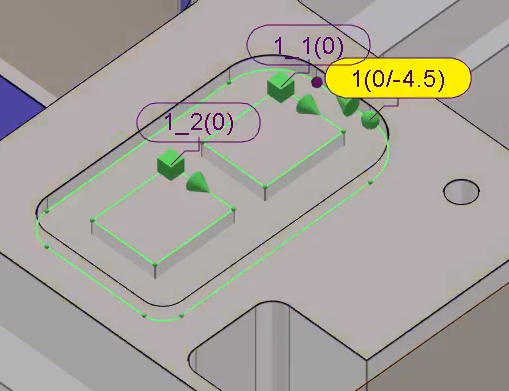 2 adalı bir cebimiz var. 2 ada arasındaki mesafe 11 mm iken, ada ile duvarlar arasındaki mesafe 10 mm'dir. Sonuç olarak, takım bulucu 10 mm veya daha az çapında bir takım önerir. |