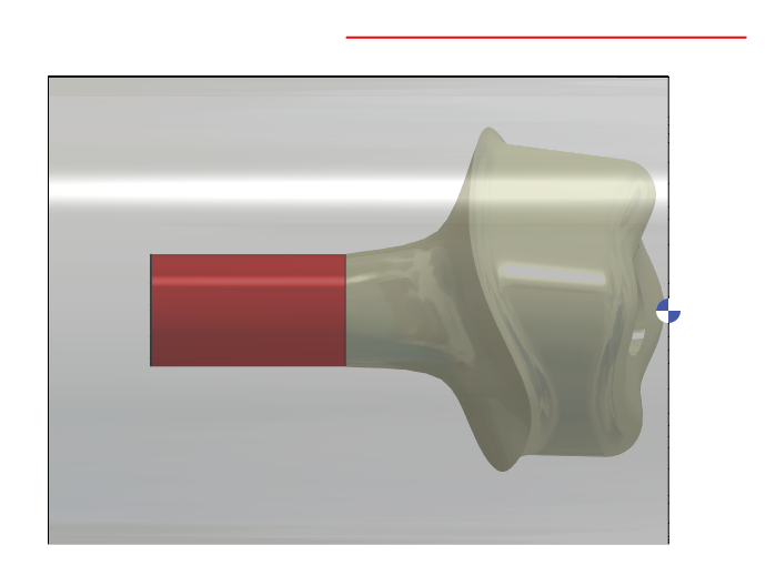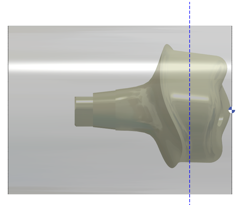 4 – Tornalama profili 5mm uzatılır, ardından D12mm'ye kadar 30 derece uzatılır (Katman #106)