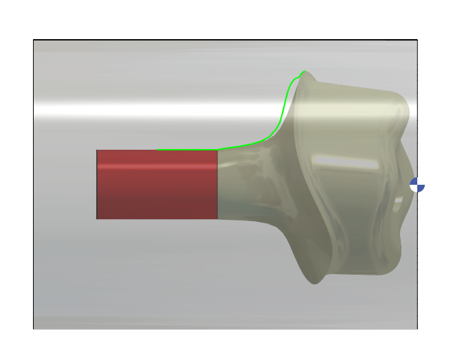 Arka takım ile işlenecek tornalama profili (Bazı kullanıcılar bağlantı alanı ve Kenar çizgisi arasındaki kalan işleme işlemini önlemek için bu yöntemi kullandı) |