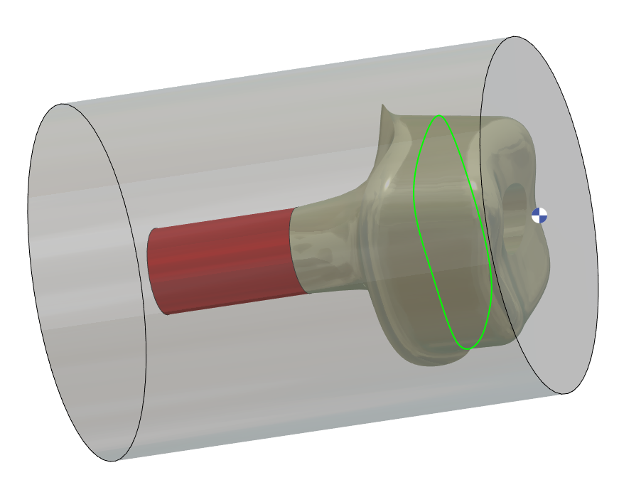 Tornalama Profili Bağlantı alanı hariç STL siluetine dayanır + 5 mm ve 120 derece Uzunluk ve Açı, UYGULAMA içinde sabitlenmiştir |