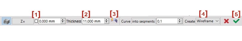 3. Type in the thickness [2] of the part.
