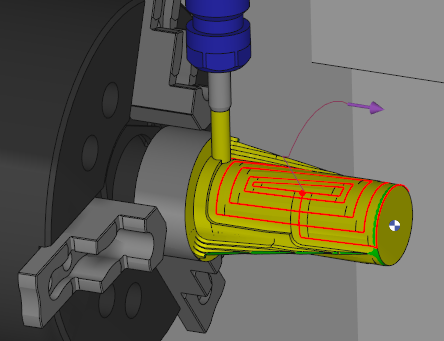 此新操作能够使用4轴联动对任何形状进行粗加工,并应用标准的偏置刀具路径。 在开放加工区域的情况下,刀具路径从材料外部开始。