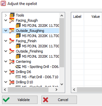 选择您需要的 Opelist,您可以阅读注释以轻松识别您需要的那个。 此时您也可以修改刀具或替换它。执行 右键单击 进行刀具编辑。技术和策略参数将根据此新刀具进行更新。 您的唯一操作是选择正确的几何图形,然后在每次选择后单击“开始计算”。