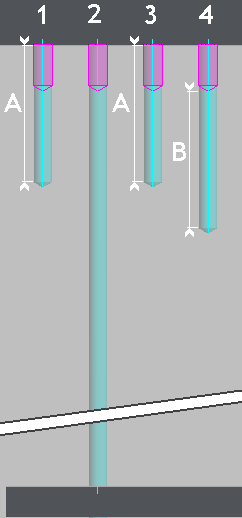 毛坯 (情况 2): 加工穿透材料。 手动 / 实体 (情况 3): 必须在深度字段(值 A)中手动输入一个值。 深度根据实体(孔或圆)的 Z 定位定义。 手动 / 毛坯 (情况 4): 必须在深度字段(值 B)中手动输入一个值。 深度根据毛坯值定义。由于定义了预钻操作,深度从 预钻孔的底部 . |