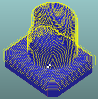 等距精加工适用于加工相对规则形状的零件。加工由参考曲线决定,该曲线可以是加工区域。刀路平行于参考曲线。 |