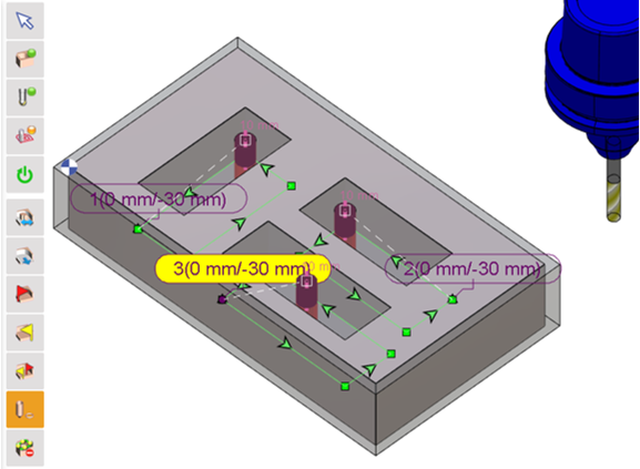 注意: 例如,在右侧的示例中,对于多个选定的型腔,您可以通过多选孔来定义每个型腔的起点。 单击命令后,您必须按住Ctrl键以选择多个孔。