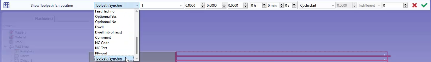 接下来,进入机床环境,如果您还没有加载机床,请加载它并设置您的 刀具 按需。 最后,您可以通过单击同步功能来检查同步。您将能够在时间图上看到循环之间的同步。 |