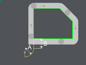 在第一个轮廓元素之前添加的四分之一圆,与其相切。如果使用了进刀超长,则进刀圆弧半径位于其之前。此半径必须大于电线半径。