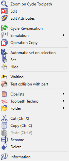 要访问这些功能, 右键单击 在 任意操作 加工历程树的行上: