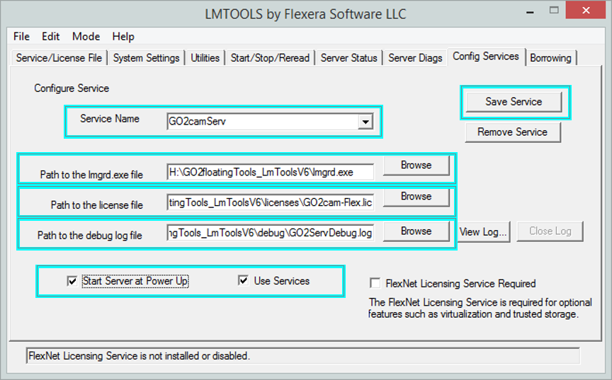 LmTools 配置 以创建和配置服务。