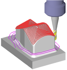 形状铣削循环 形状铣削菜单涉及: 的选项 3 轴铣削 (粗加工/残料加工、精加工、特定加工), 的选项 4轴联动 和 5轴联动 . 的选项 5轴专家 . 本章通过以下内容介绍每种加工操作: 刀具路径定义 描述软件主要优势和功能的关键点 有时,建议和警告 策略、移动、技术和选项页面的参数表。当参数帮助页面存在时,您可以点击链接进入。