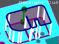 实体上的直线或锥度切割 介绍 通过在实体上简单单击即可创建直线切割和锥度切割的轮廓。 创建直线或锥度轮廓 单击起始面。 箭头显示加工方向。 您可以单击箭头反转方向。 单击结束面;如果单击同一面,轮廓将闭合。 将显示轮廓的预可视化:屏幕上会显示直线切割或锥度切割的信息。 您可以更改轮廓的起始/结束面: [1] Automatic selection: if you click this icon, GO2cam selects the best face for the starting face. [2] Manual selection: you can click any face of the solid profile. 您也可以移动起始点和/或结束点: 只需单击绿色元素并沿面移动它。将其放置在正确的位置。 使用此按钮确认 [3] 或使用此按钮取消 [4] . 确认后,将创建轮廓。 注意: 轮廓将由自动穿丝点自动识别, 之后,您可以使用上下文弹出菜单(右键单击轮廓)编辑和修改轮廓。