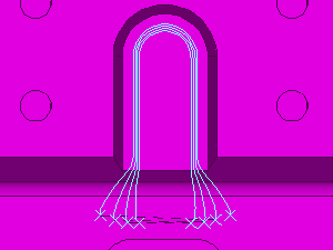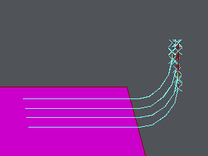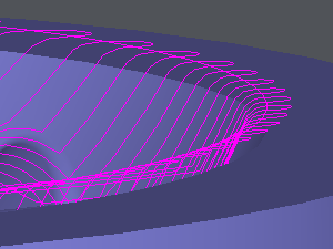 如果两条刀路之间的快速移动相对于刀具直径太小,则该移动以弯曲进给率完成。 |