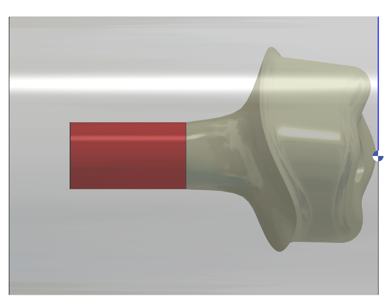 用反向刀具加工的车削轮廓 (一些用户使用此方法避免在连接区域和颈缘线之间进行剩余加工操作) |