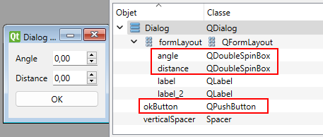 Basically, components of the dialogs are retrieved in the script by their name, i.e. objectName property in Qt Designer, and some callbacks are predifined to catch clicks or value modification.