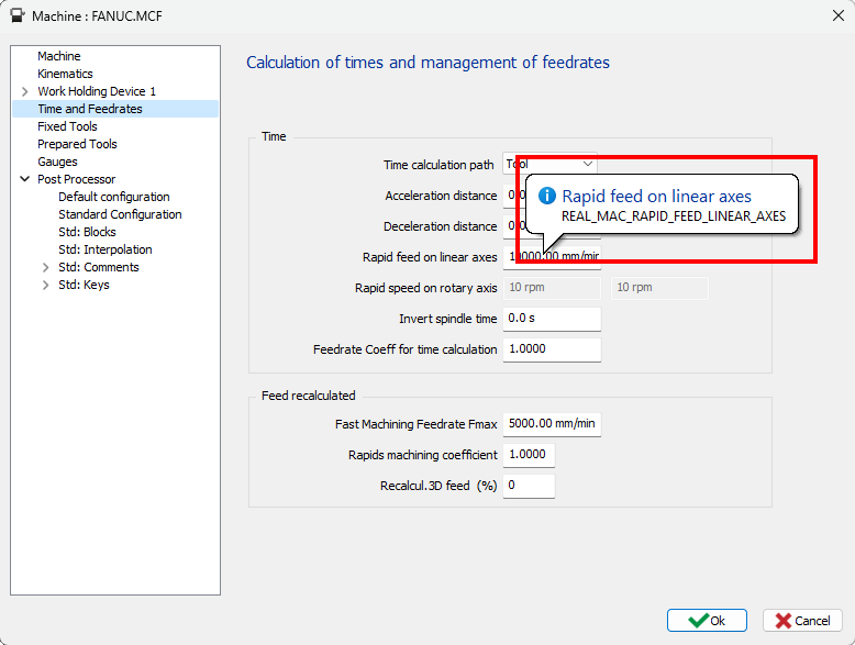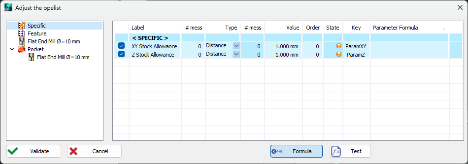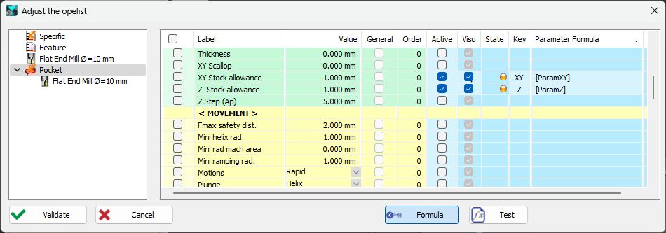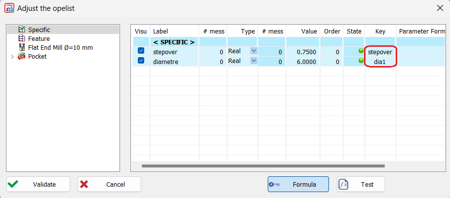 The JavaScript API gives the possibility to read/write parameters of each components of the machining process (machine, material, cycles and tools).